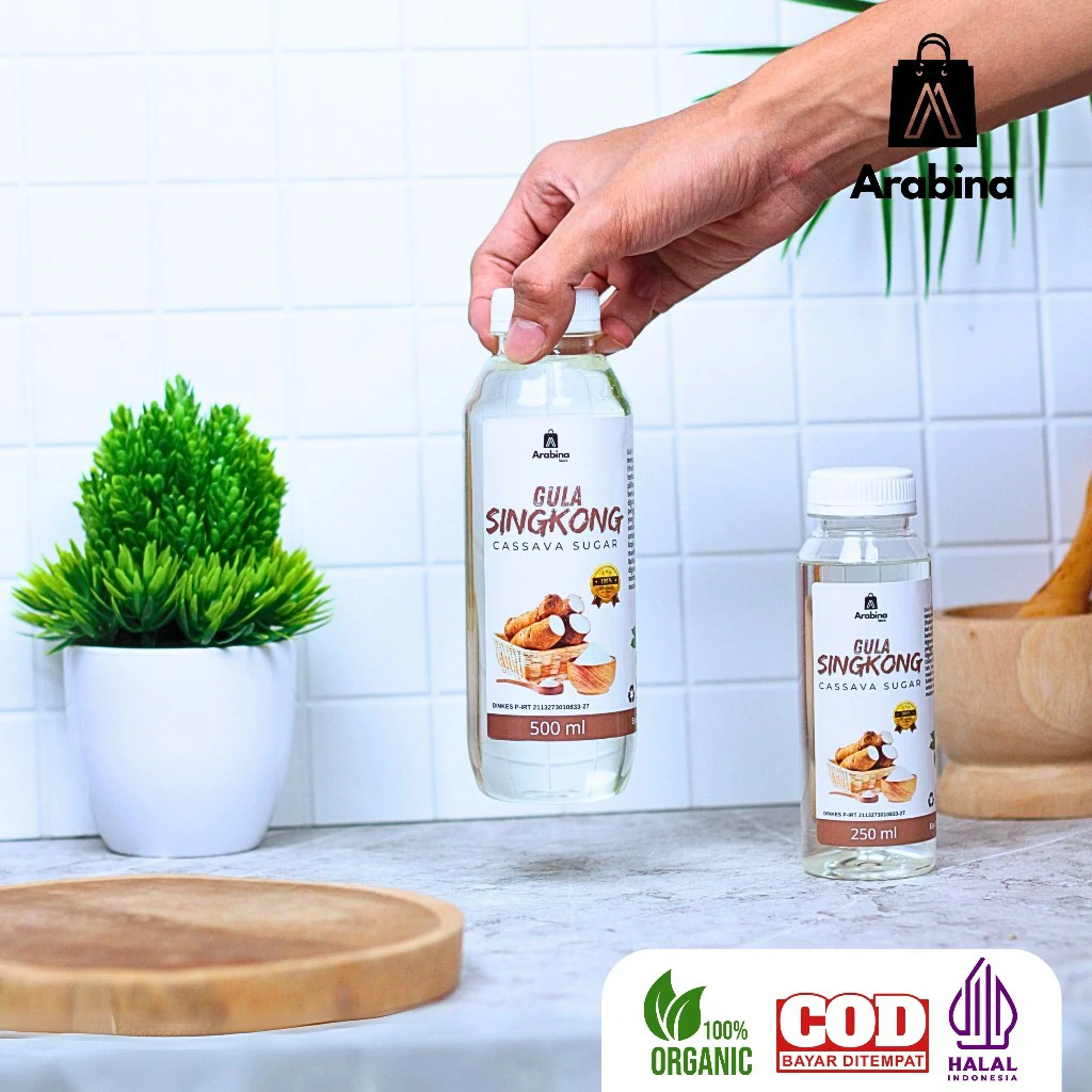 Gula Singkong Arabina merupakan gula buah yang terbuat dari singkong pilihan dan berkualitas. Dapat digunakan untuk pengganti gula tebu yang digunakan sehari-hari. Cocok untuk minuman teh, kopi, es buah, dan masih banyak lagi. dan aman untuk penderita diabetes yah kak karena rendah kalori. selain itu bisa juga sebagai asupan pengganti nasi bagi mereka yang sedang menjalankan program diet.