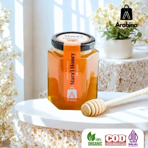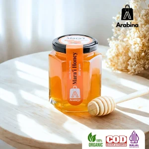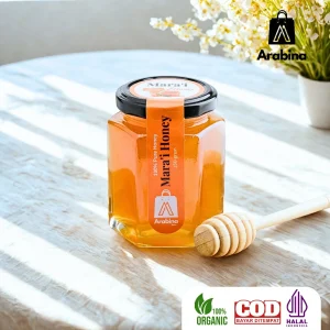 Madu Mara’i Arabina – kemurnian manis dari lebah yang mengisap nektar bunga liar di padang Arab.