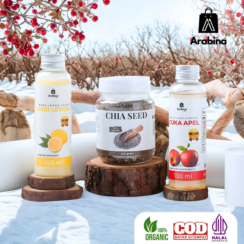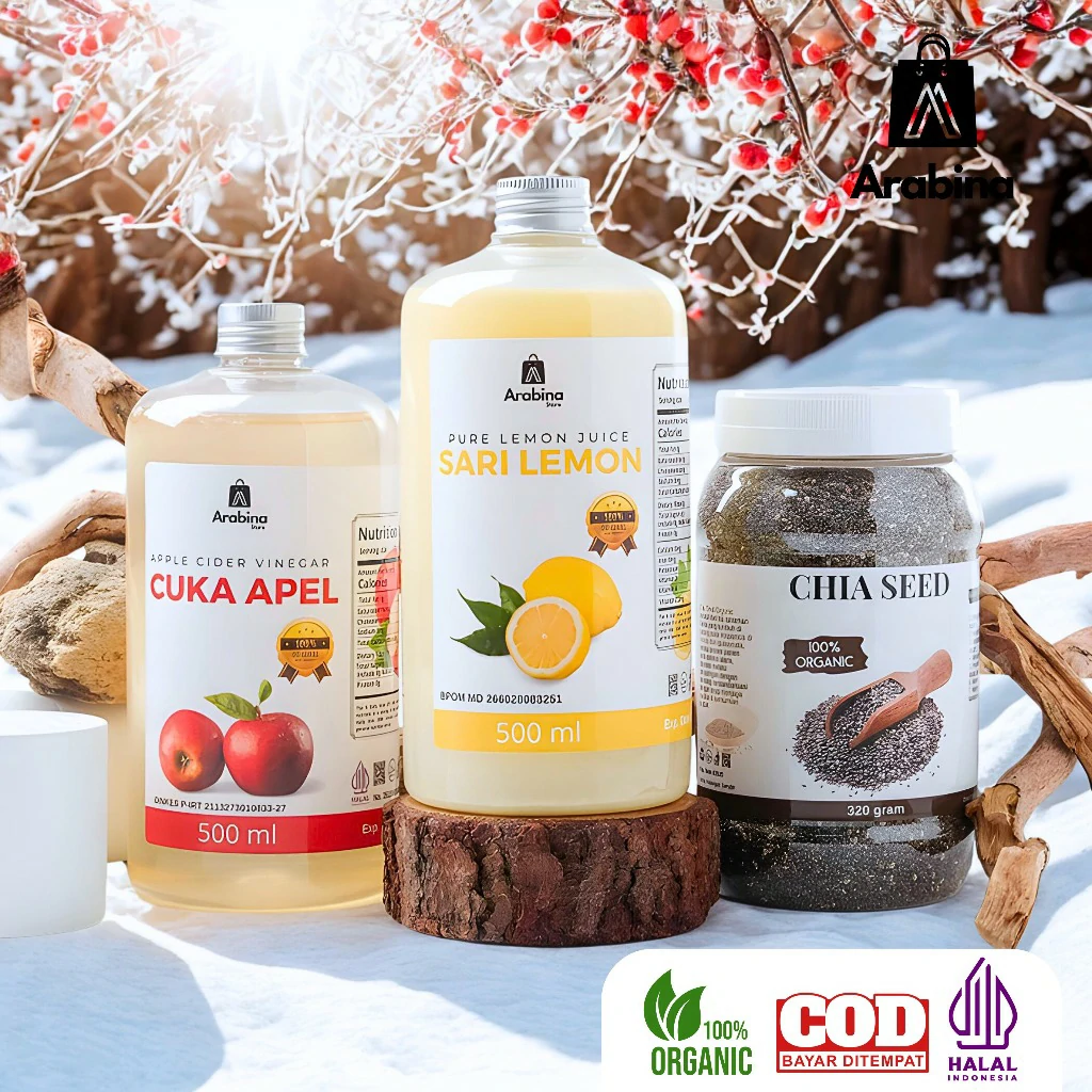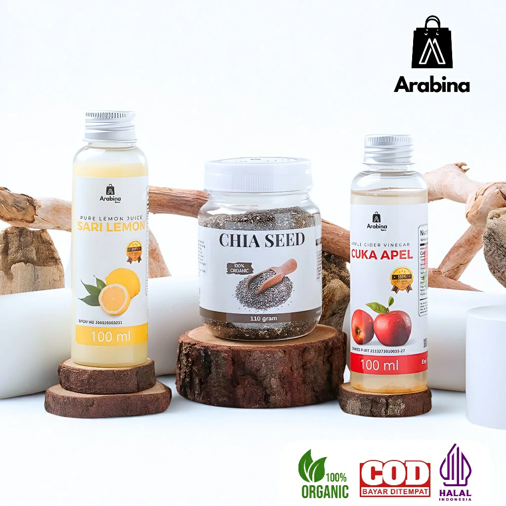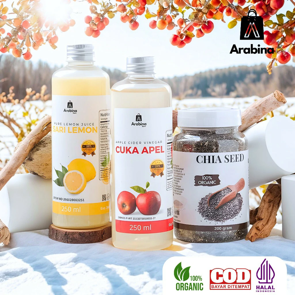 Arabina Paket 3in1 Detoks Diet Chimonpel 100% Original Organik Sari Lemon Cuka Apel Chia Seed