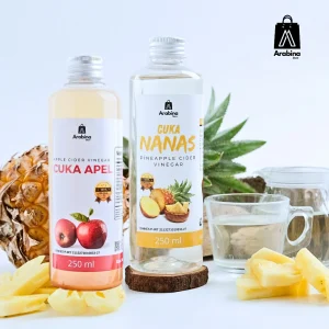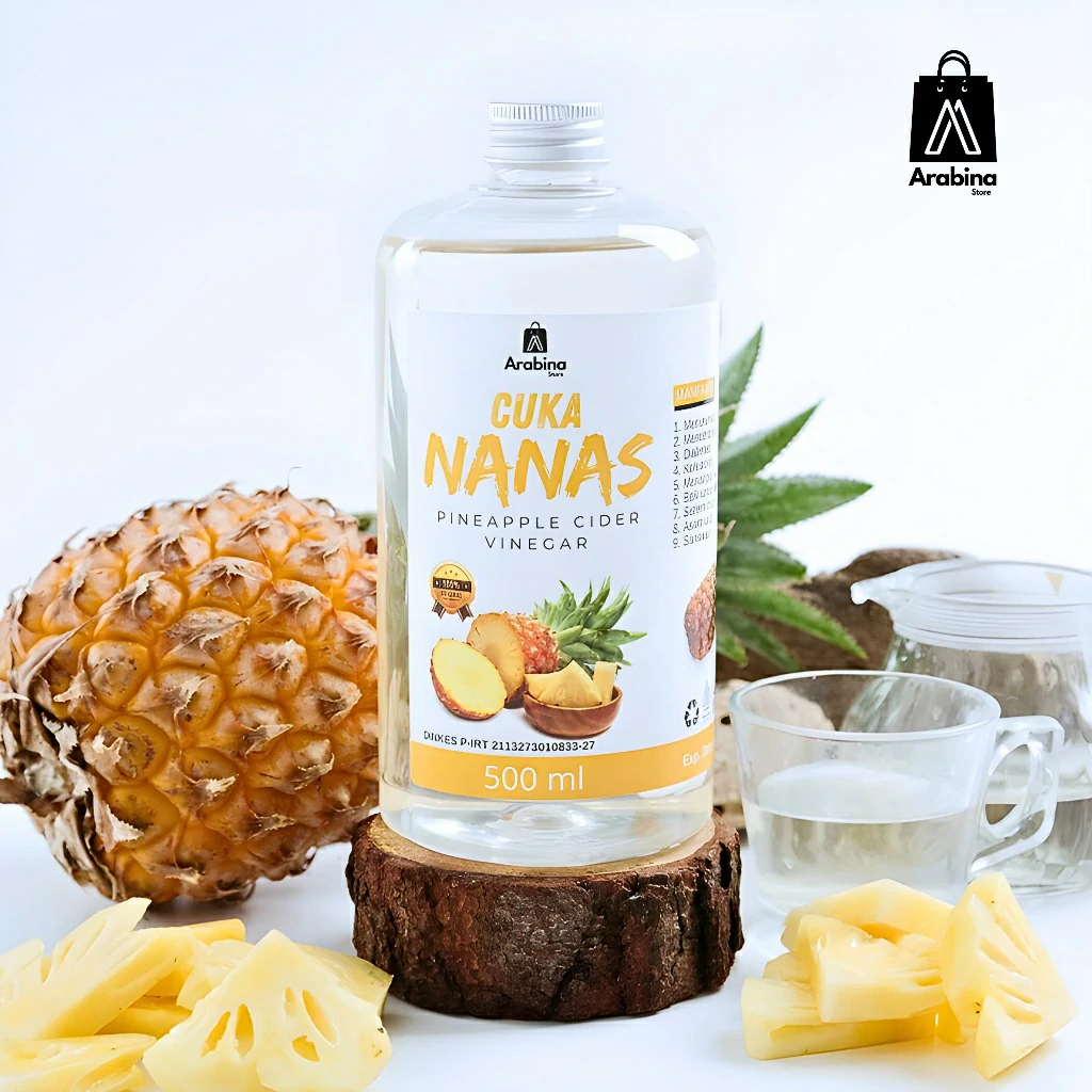 Cuka nanas Arabina adalah Alami yang terbuat dari buah nanas pilihan yang melalui proses fermentasi alami dengan menyertakan seluruh bagian nanas kulit nanas & inangnya diproses fermentasi tanpa pemanis buatan, tanpa penggunaan bahan kimia . Cuka nanas memiliki rasa yang manis dan asam.