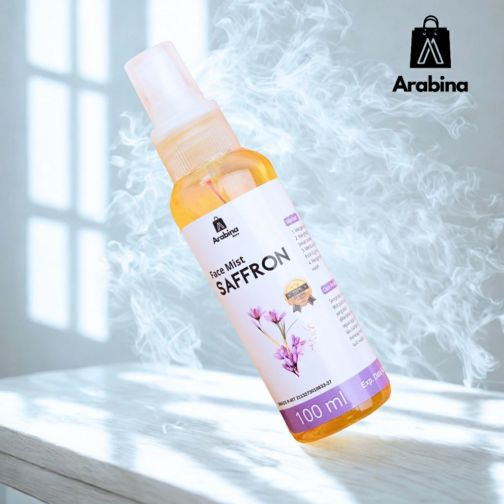 Face Mist Saffron Arabina – sentuhan alami yang bikin kulit glowing, segar, dan sehat setiap hari.